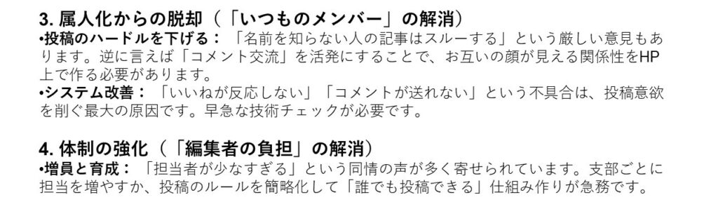 会の現状を真摯に受け止め、未来に向けて具体的な行動へとつなげようとする姿勢に深く感銘を受けました。